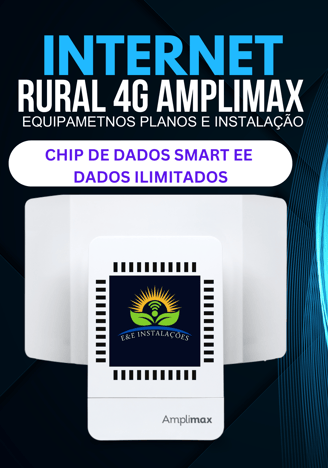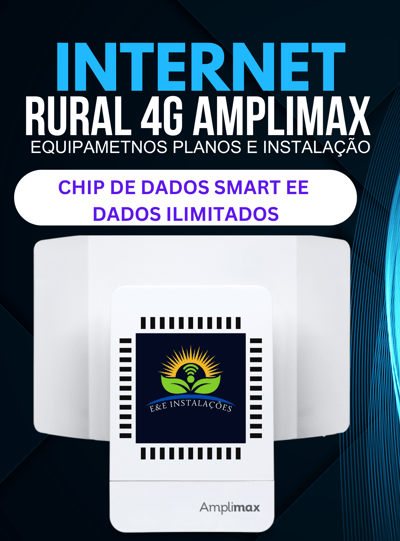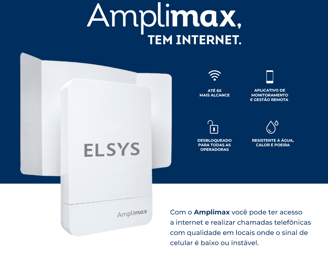 O AmpliMax integra modem 4G com saída ethernet e uma antena de alto ganho para acesso à internet e telefonia em locais de difícil acesso.